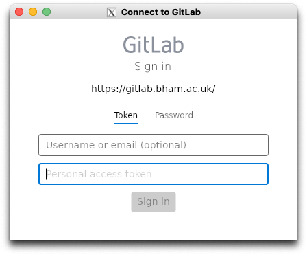 Select an authentication method for 'https://gitlab.bham.ac.uk/':